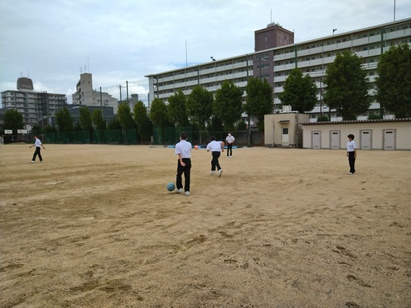 しばらく雨が続きましたが、今日は雨も降っておらず、グランド使用可能の日でした。蒸し暑い日でしたが、約30人ほどの人がボールを使って遊んでいました。