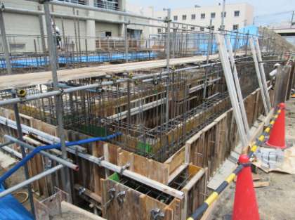 13日〜15日までお盆で学校は、休業日となっていました。本日から業務を再開しましたが、給食調理室の建設工事も再開しました。いよいよ基礎の鉄筋が組まれコンクリートを流し込む準備に入っています。