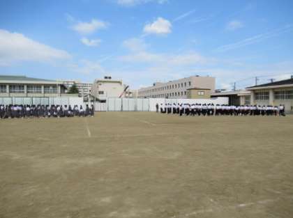 グランドでは、ラグビー、野球、陸上部が、体育館ではバレーボール部が、中庭では吹奏楽部がそれぞれ練習に励んでいました。 -