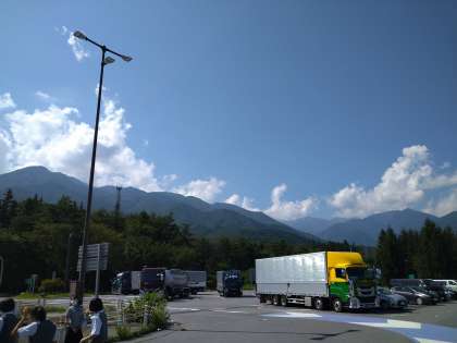 駒ヶ根サービスエリアでトイレ休憩を取っています。かなり暑さを感じます。