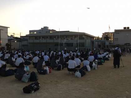 6時15分ごろから修学旅行のバスが菫中学校に到着し、さきほど帰校式も終わりました。現在生徒の皆さんも帰宅の途についているところです。全員無事に帰ってこられたとのことで、まずは安堵しております。皆さん、お疲れ様でした。ゆっくり体を休めてください。