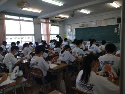 今日は、校下3つの小学生のみなさんが、中学校の授業体験に来校してくれました。ありがとうございました。