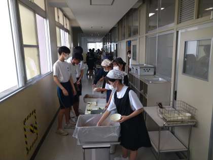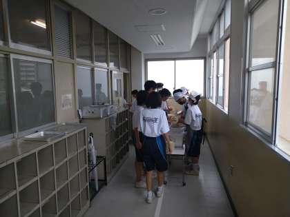 今日は、教育委員会の方も来られていました。みなさんの早い行動と校長先生自ら、食器を渡される姿に驚いておられました。
