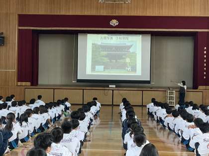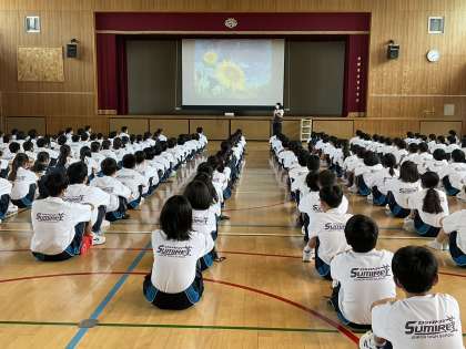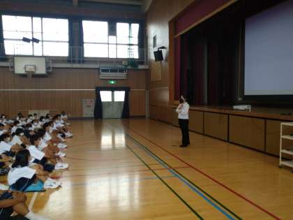 6限目の学年集会で、校外学習の説明がありました。パワーポイントでの説明でした。まず最初に、生き生きと咲き誇っている「ひまわり」の写真が映し出されました。ひまわりは太陽に向かい、みんな同じ方向を向いています。みなさんも、ひまわりのように、みんな目的に向かって、同じ方向を向いて欲しいものですね。ひまわりはとてもポジティブなイメージがあります。1年生のみなさんにピッタリのことばですね!