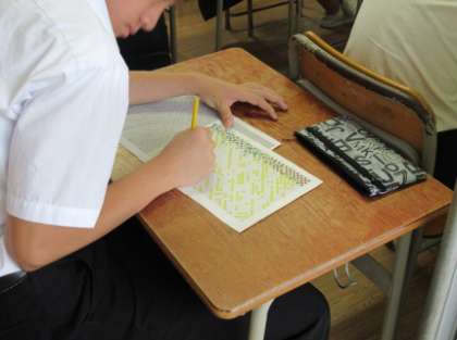 中間テスト1日目。本日は、校舎内も過ごしやすい気温でした。各学年とも集中して最後まで粘り強くテストに向かう姿勢が見られました。 -