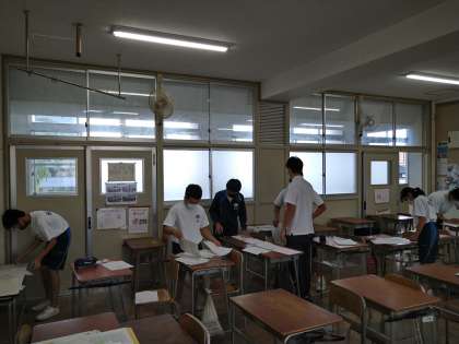 新型コロナウイルス感染症拡大防止対策として、密にならないように、自身の作業が済み次第、下校措置を講じながら準備を行いました。