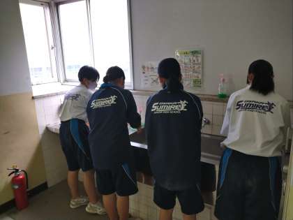 引き続き、新型コロナウィルス感染症拡大防止対策をお願いいたします。 マスク着用、登校前の検温と健康観察表をお忘れなく。