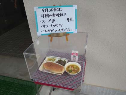 本日は、牛肉の香味焼き、スープ煮、サワーキャベツ、コッペパン、いちごジャム、牛乳でした。