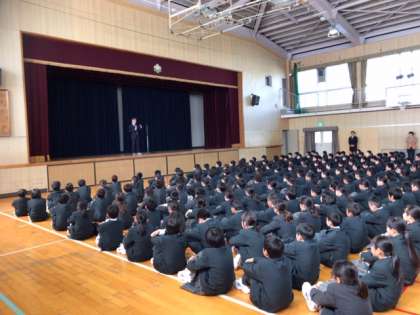 始業式では、校長先生から「集団生活の中には2割の我慢が必要である」という話と、