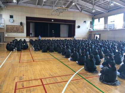編成に先立って全クラブ体育館に集合し、クラブの決まりや心構えをクラブ担当から話していただきました。