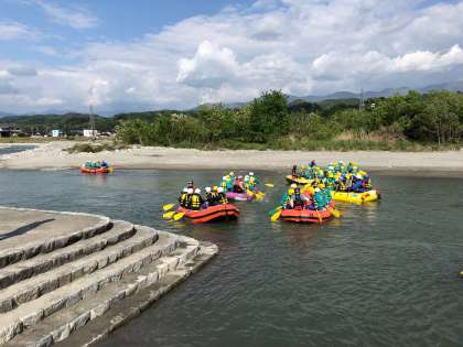 ラフティングの説明を受けたあと、各艇スタートしていきました。