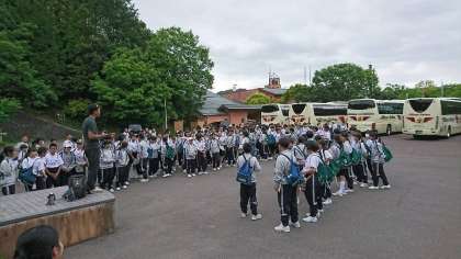 野外オリエンテーリングが始まりました。まずは◯×クイズをしているところです。