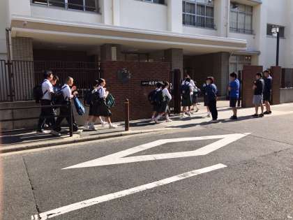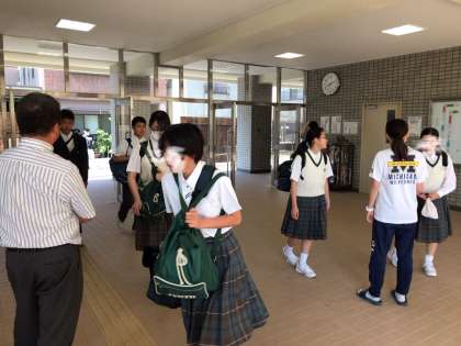 本日から代休があけ、全学年が登校しました。正門では教員や風紀委員が元気に挨拶をしていました。