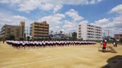 本日の5・6限に体育大会の全体練習が行われました。大変暑い中でしたが、行進や体操など開会式や閉会式の練習を行いました。