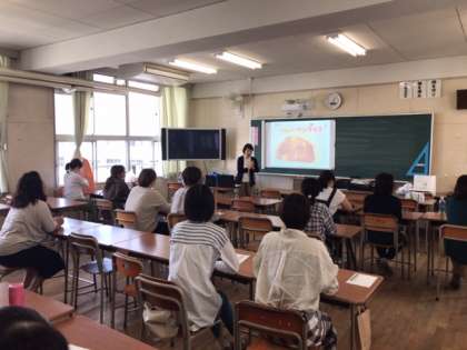 保護者に中学校の給食を配膳し食べていただきました。また、小学校の栄養教諭から食育について学びました。