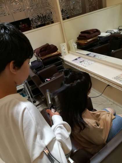 ヘアーアレンジしてもらったり、実際に教えてもらいながら二人でヘアアイロンをあてたりしています。