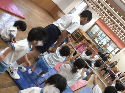 城東ちどり保育園で職場体験を行っています。園児たちと楽しく遊んでいます。