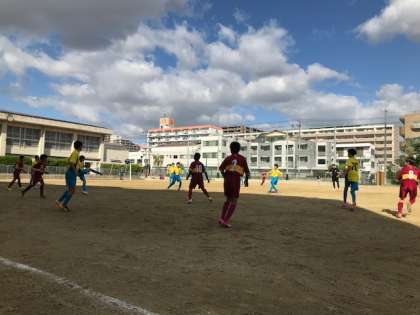 下福島中学校と試合を行い、1ー1で引き分けました。一生懸命ボールを追いかけ頑張っていました。これからも練習に励んでいい試合ができるよう頑張っていきます。