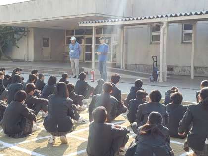 1年生の防災訓練の様子です。水消化器を使い消火訓練を行いました。この防災訓練では地域の方々にたくさんサポートしていただきました。ありがとうございました。