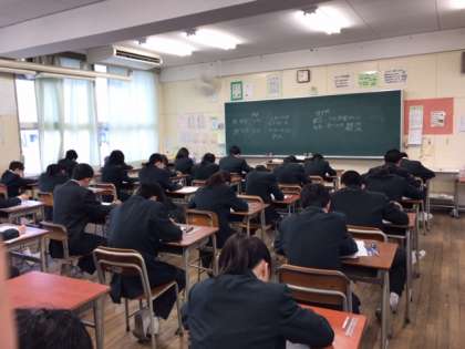 本日より2学期期末テストが始まりました。生徒は1教科目の数学から頑張っています。1年生と3年生のテストの様子です。