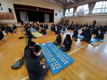 2月7日の5・6限に1年生百人一首大会がありました。国語係と文化委員が中心となって説明や準備を行いました。どの班も白熱した試合が行われました。結果は、優勝3組、準優勝2組、第3位4組でした。