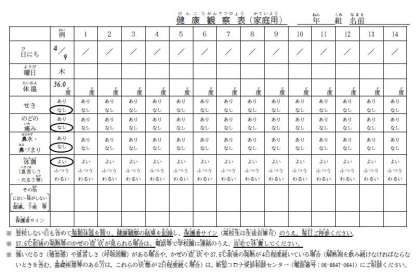 健康観察表・休業中の記録をしっかりとっておきましょう。