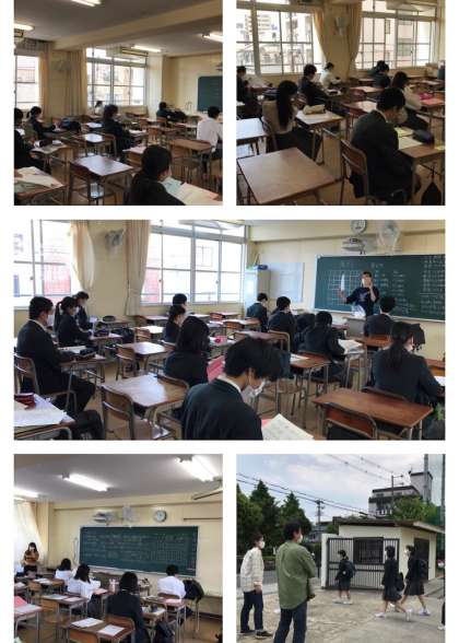 10時、11時に集合した3年生は各教室で、今までの課題の提出やアンケートの記入など短学活を行いました。また、新しい課題やマスク、図書カードの配付を行いました。数名の欠席者がいましたが、みな元気そうで3年職員一同、ホッとしました。