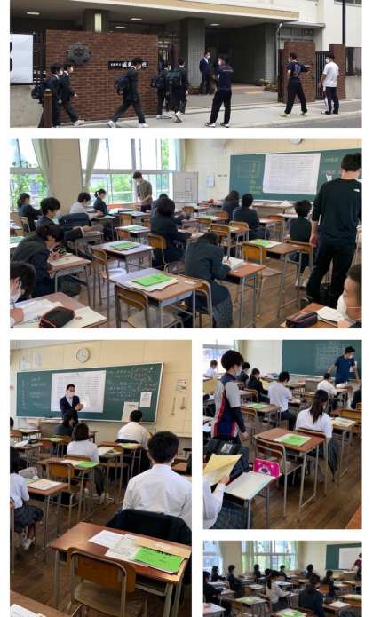 12時、13時に2年生が分散登校をしました。今までの課題の提出やアンケートの記入などの短学活を行いました。ほとんどの生徒が時間に余裕を持って登校していました。子どもたちの元気な姿に2年職員一同安心をしました。
