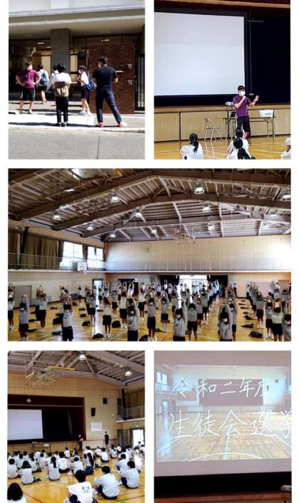 本日は、全員で体操をしたあと、生徒会選挙を行いました。例年とは違い、応援演説者なし、撮影での演説でした。動画も見やすく編集していただき、子どもたちも集中して演説を聞いていました。明日は3年生で選挙を行います。