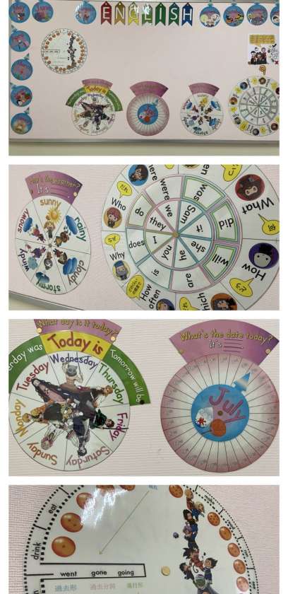 今年度よりC-NET(英語の先生)で月曜日と水曜日に来られて英語の授業をしていただいているレイジェイ先生が、各学年の階段の踊り場に英語の学習教材を作成してくださっています。