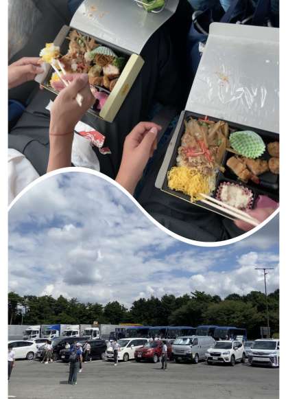 12時30分に駒ヶ岳SAにつきました。トイレ休憩を済ませ昼食の時間になります。思っていた以上に日差しが強く暑いためバス内で昼食になりました。