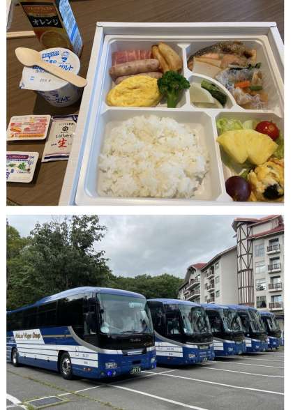 朝のスタートは朝食から。白馬東急ホテルが作ってくれた弁当を食べました。栄養満点です。