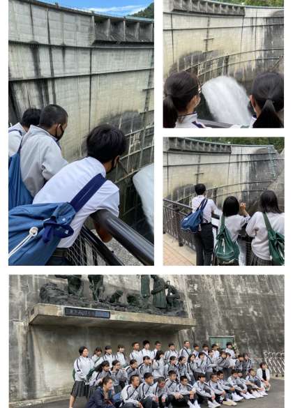 自由散策の様子や風景です。トンネル内はとても寒く、多くの生徒が上着を着ていました。放水の様子も雄大な景色と共に見ることができました。