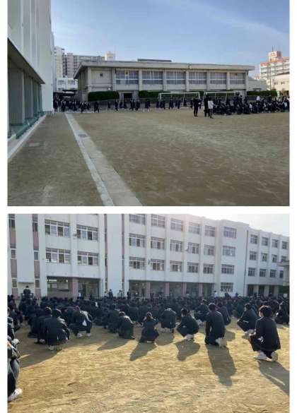 11月18日(水)6限に校内で火災を想定した避難訓練を行いました。放送の指示のもと、全校生徒がグラウンドに素早く移動しました。その後、防災に関する話を聞きました。