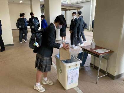 エコキャップ回収BOXは玄関ピロティに設置しております。