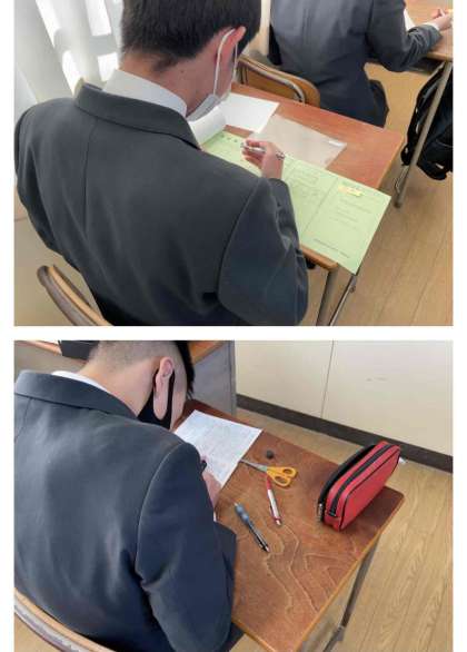 本日、3年生は土曜授業を行いました。卒業文集の下書きから清書、私立高校を受験する生徒は願書の作成を行いました。卒業や受験に向けて近づいてきました。一日一日を大事に過ごしてほしいと思います。