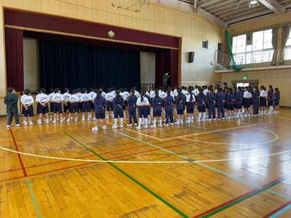 1年生の体育の授業です。整列や点呼の仕方を学んでいました。