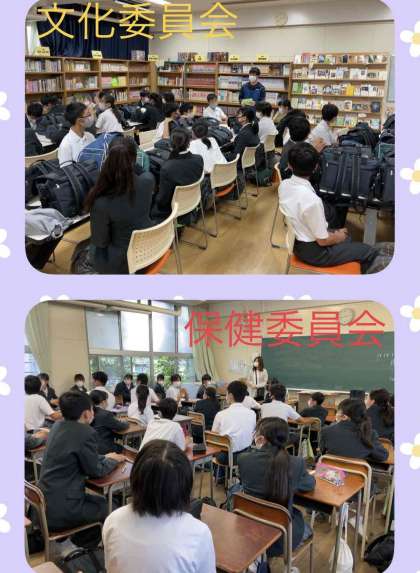 各クラスから[学級代表・風紀委員・体育委員・保健委員・美化委員・文化委員]を決め、全学年の委員が一同に集まり、今後の委員会の活動内容の確認や役割を決めました。