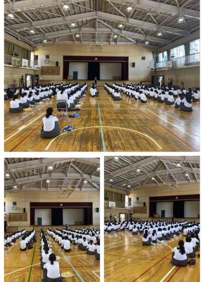 学習面については夏休み中に少しの時間でもいいので学習をする習慣をつけるように努力すること、健康面については熱中症に気を付けて体調を整えること、生活面についてはケータイの使い方に気をつけてトラブルに巻き込まれないようにし、責任を持って行動することなどをお話しいただきました。