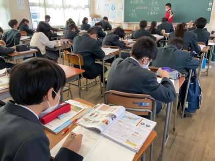 来週のテストに向けて、各教科の授業は熱のこもった授業が行われています。生徒たちも一生懸命話を聞きノートをとっていました。