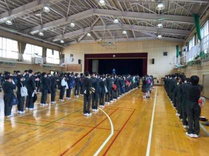 5限に2年生は体育館で学年集会を行いました。新しく学年に所属する先生の紹介や書類の整理を行いました。
