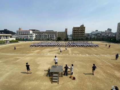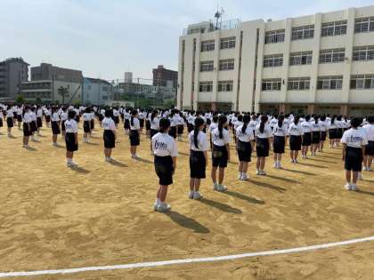本日、雨天予報もあり5・6限に行う予定だった体育大会全体練習を1・2限に行いました。入場行進の練習では前回よりも上手に、周りと合わせながら行進を行うことができました。