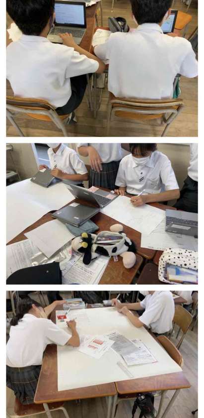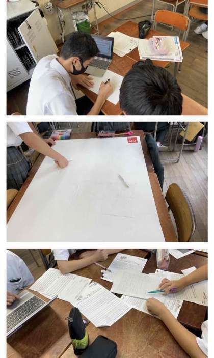 今週から文化祭の取り組みが始まりました。2年生では、SDGsについて各クラス、各班で調べ学習を行っています。調べたものを各班でポスター担当とプレゼン担当にわかれて、取り組みを行っています。