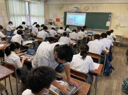 デジタルツールを使った授業やグループワークもあり生徒も先生も真剣に授業を受けていました。