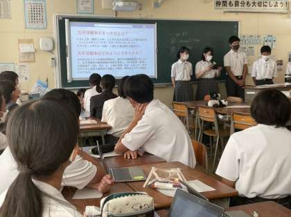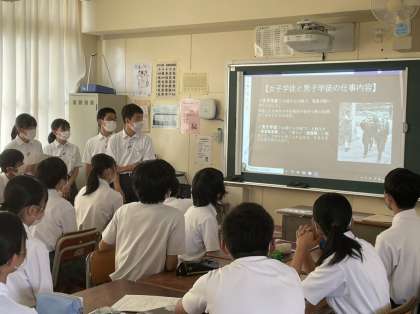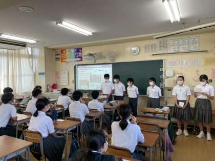 各学級では、1945年(昭和20年)の沖縄戦について、これまで自分達が調べたことを発表しました。
