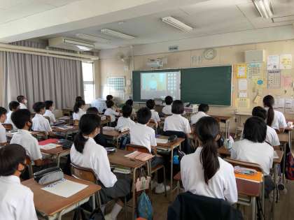 会長、副会長、書記に1・2年生から立候補があり、それぞれが公約を掲げて、選挙を行いました。会長は信任投票、副会長と書記は決選投票でした。コロナ禍でオンラインを活用して、生徒たちは教室から話を聞き、投票を行いました。