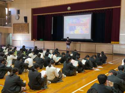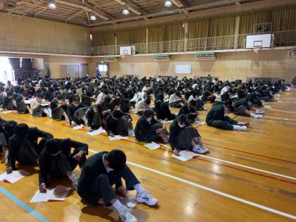本日5限に2年生は、校外学習の事前指導を体育館で行いました。春の校外学習の反省と学年としてさらなる向上を意識した集会になりました。