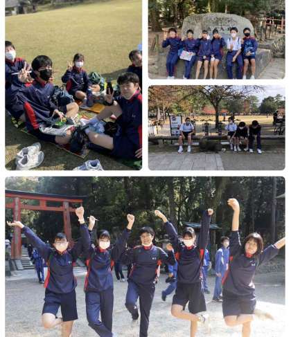 昼食も各クラスで集合時間が違う中、多くの班が時間を守り春日野園地に集まることができました。午後からの活動もクタクタになりながら、たくさんの施設の見学を行いました。