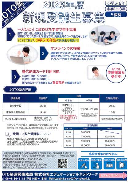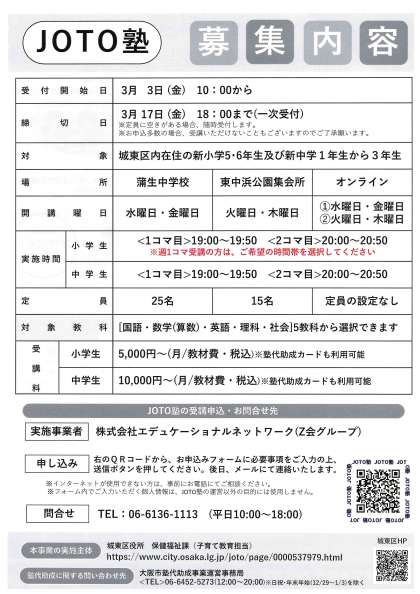 JOTO塾 新規受講生募集の案内(城東区役所)