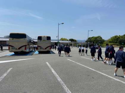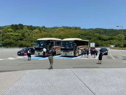 上板SAに着きました。各クラス、バス内でレクリエーションを楽しんでいます。